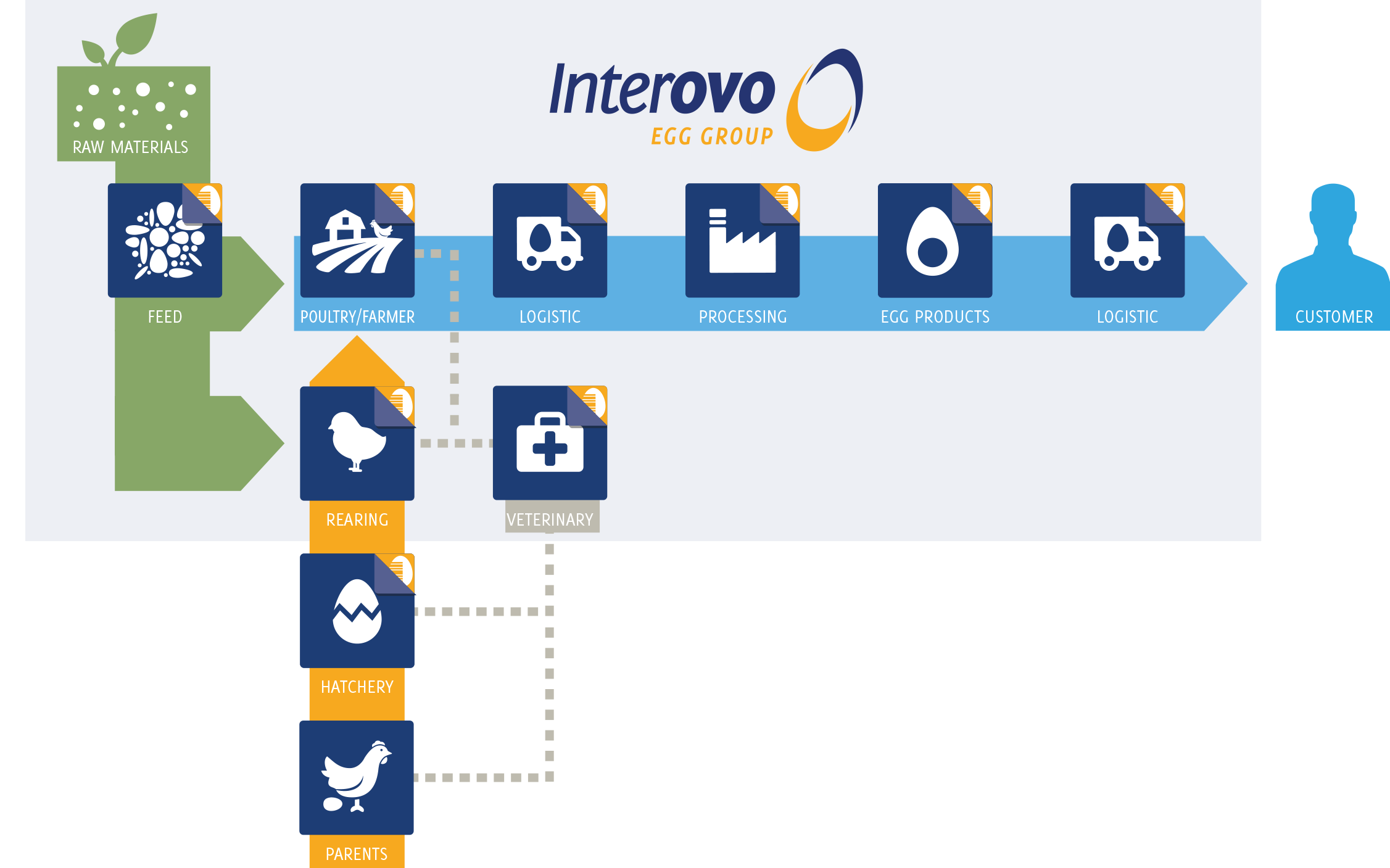 For the traceability of the products all the companies use the EggTraceBase® system. EggTraceBase® has for many years been in use within the farms of the Interovo Egg Group. By integrating the links in the chain the companies and customers are always guaranteed a safe and traceable product.